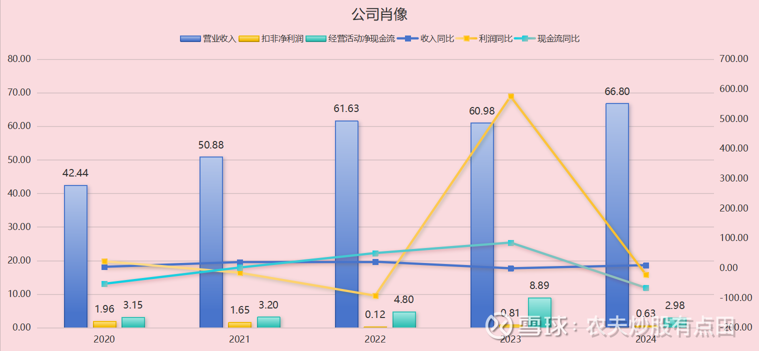 关键指标:近三年,公司营业收入分别为61.63亿、60.98亿和66.8亿,复合增长率为4.11%;扣非净利润分别为0.12亿、0.81亿和0.63亿。经营活动净现金流分别为4.8亿、8.89亿和2.98亿。截至2025年H1,公司收入为36.68亿,同比增4.73%;扣非净利润1.43亿元,同比下降32.89%;经营活动净现金流5.64亿元,同比增40.78%。公司收入多年保持较好的增长态势,2023年出现小幅下滑,但随后又恢复增长,显示公司业务相对稳定。公司利润波动较大,盈利能力稳定性不足。