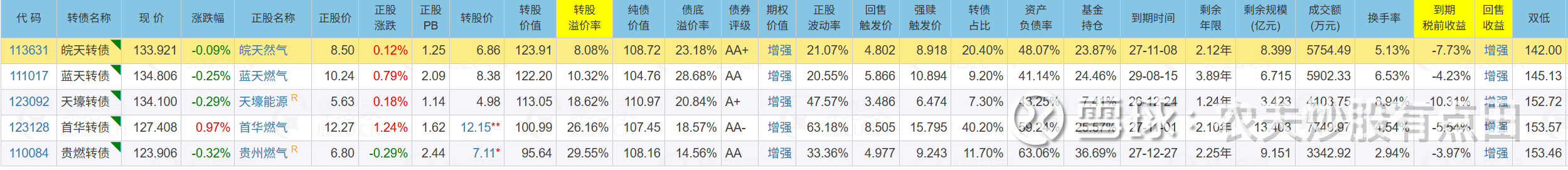 燃气公司对应的可转债