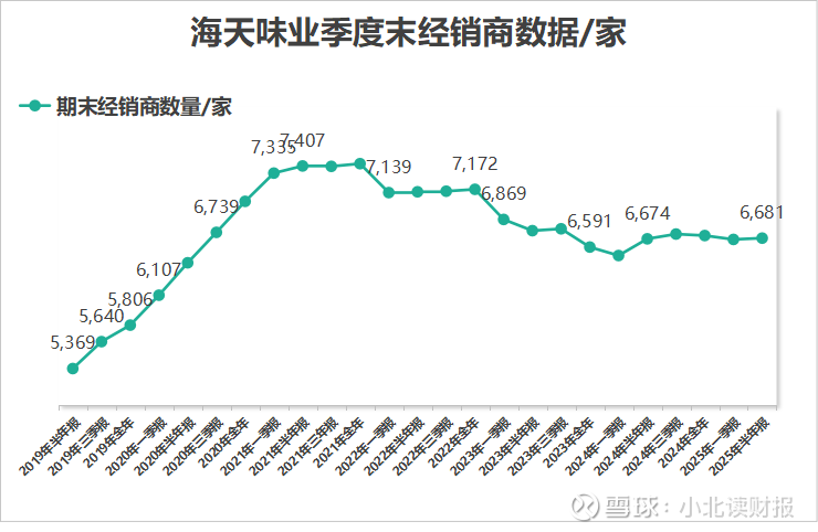 从海天味业不同季度期末经销商的数量看: