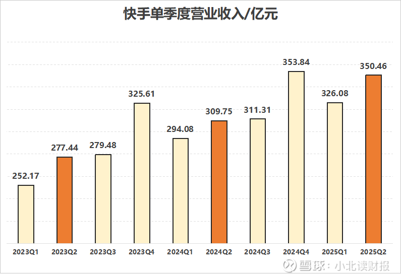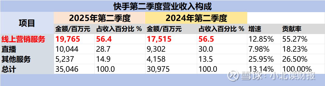 今年第二季度,快手营业收入同比增长13.1%,达到了350亿元,其中: