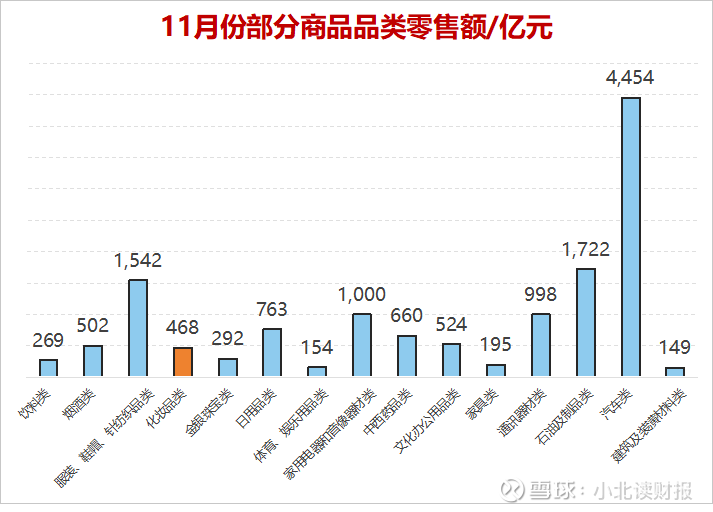 就拿零售额里的化妆品类来说,11月份的零售额只有468亿元。