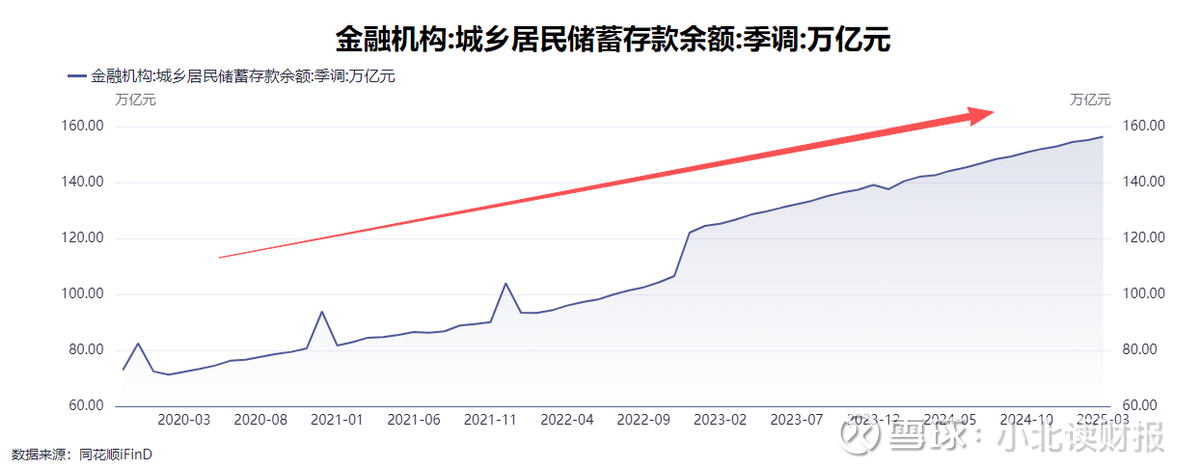 看到近五年来一路上涨的城乡居民储蓄存款,就知道攒钱的传统习惯因为各种原因又被强化了。