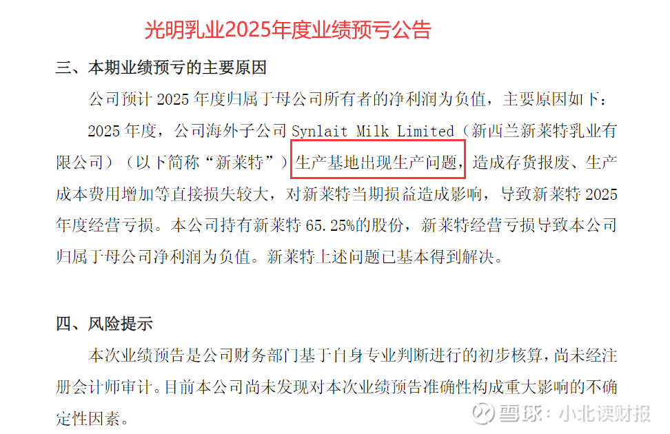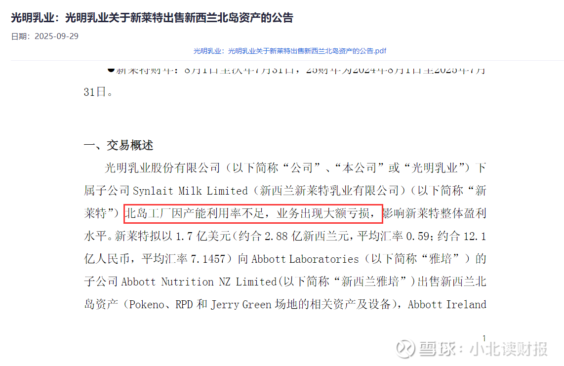但是生产问题到底是什么问题,公司不披露,咱也不知道问谁;光明乳业2025年9月底披露的信息是该子公司的北岛工厂产能利用率不足,于是就把它卖给了雅培。