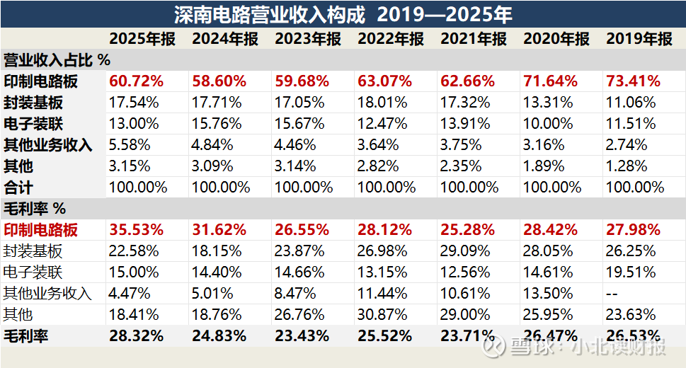 包括印制电路板业务占比从73.41%降至60.72%,封装基板占比从11.06%提高到17.54%,以及其它业务营收占比虽然很低但是也在提升。