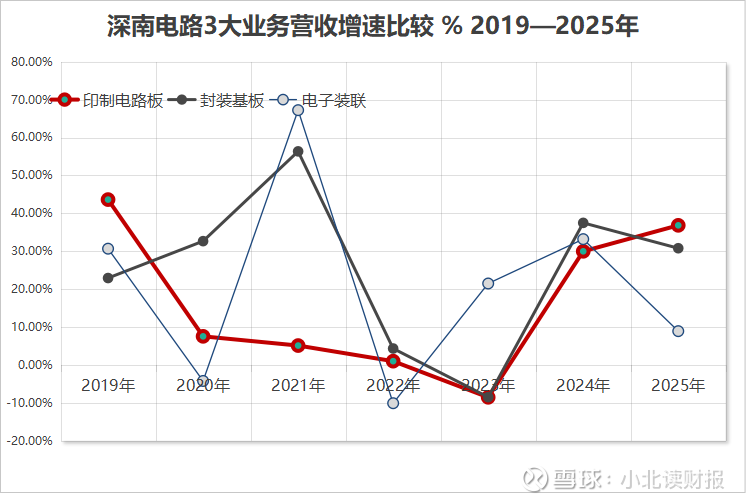 2025年电子装联业务增速只有8.93%,但是由于PCB和封装基板业务增速都超过30%,且PCB业务营收占比约为60%,因此公司整体营收增速超过了30%。