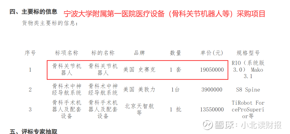 2024年宁波大学附属第一医院医疗设备(骨科关节机器人等)采购项目中标结果公告中提到了一套史赛克的骨科关节机器人,价格为1950万元。