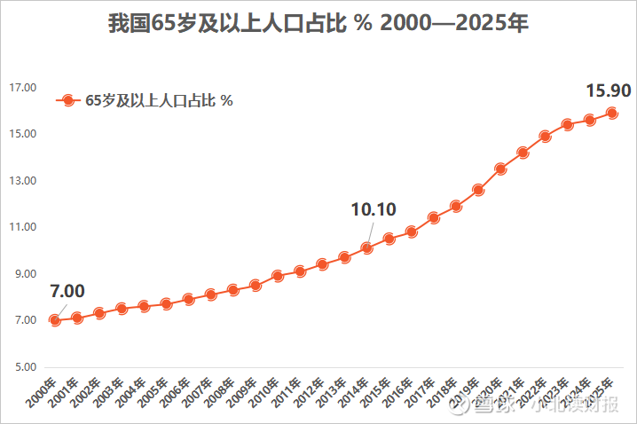 根据国家卫健委统计公报显示,2025年我国居民人均预期寿命达到79.25岁,与此同时,我国人口老龄化持续加剧,65岁以上人口所占比重逐渐增加,2025年该比例达到15.9%,而在2014年该比重为10.10%。