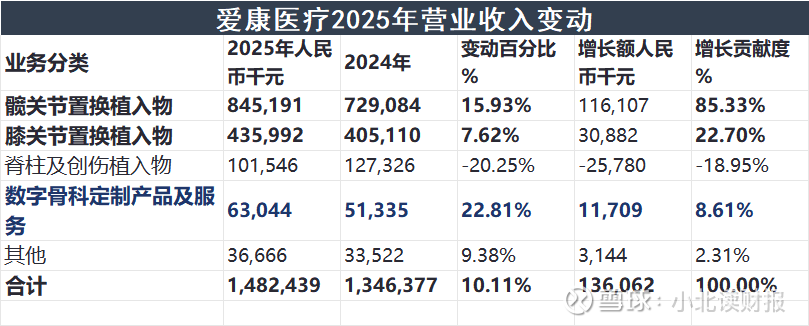 如下表所示,2025年爱康医疗营业收入同比增长10.11%,其中数字骨科定制产品及服务收入同比增长22.81%;