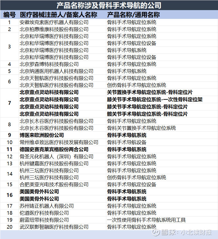 在国家药监局官网搜索“骨科手术导航”,共搜到265条记录,产品名称中带有“骨科手术导航”的企业共有20家,北京壹点灵动科技有限公司是里面的一家,而壹点灵动是爱康医疗的全资子公司。