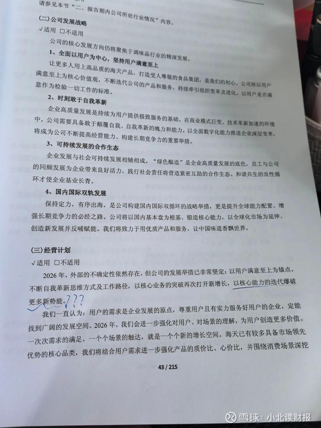 其实昨天晚上看到海天味业这种年报风格,我突然就心慌了,因为它跟原来太不一样,我看股东信和恒瑞医药的年报,也从未见过这种描述、这种词汇。
