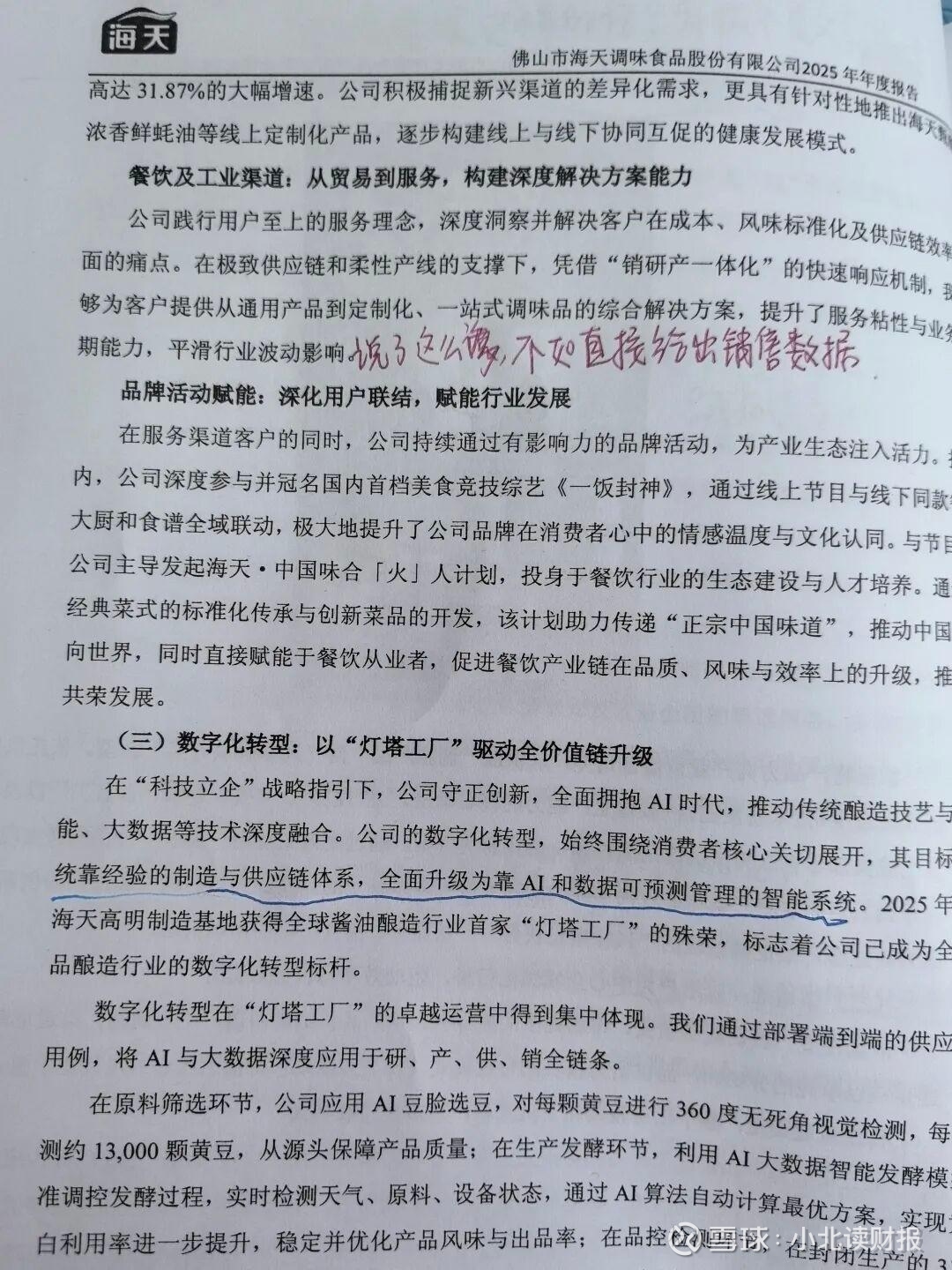 不知道海天今年的年报到底是找谁写的,到处都是飞轮、新势能、压舱石、高质量增长路径这种风格的话。