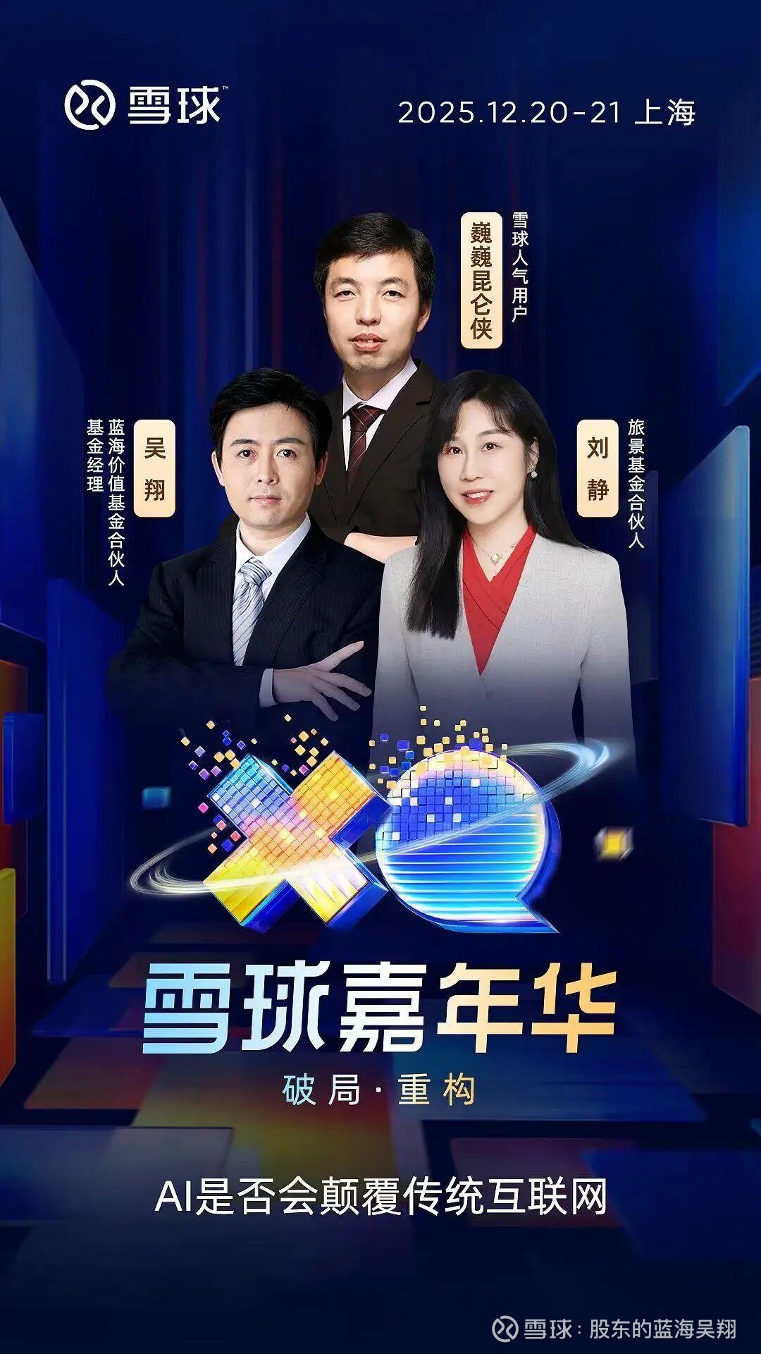 周末作为嘉宾去上海参加了雪球嘉年华,和@巍巍昆仑侠,@静树长青,两位大咖对谈,讨论了对互联网投资的看法,以及AI对互联网行业的影响,回答了球友关注度高的几个问题,也分享了我对美团、拼多多、贝壳等公司的看法,大家有兴趣可以看这个对谈回放链接:网页链接