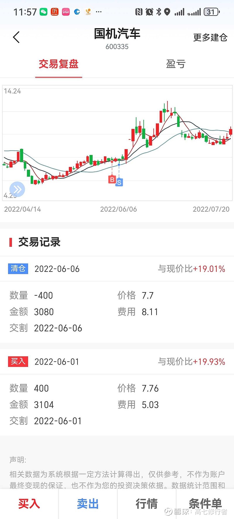 ,6月1日买,6月6日卖,基本上都是凭感觉的,之后四天上涨30个点,这个就属于认知之外的。