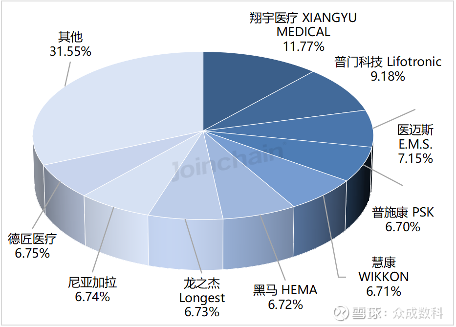 从国产品牌具体型号上看,排名前三的型号分别来自普施康的P-ECP/TI、尼亚加拉的CycloSys-P22C和翔宇医疗的XY-K-MEDICAL-A。