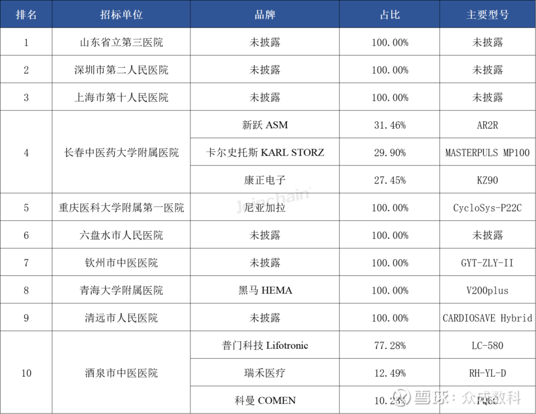 采购单位排名前三的分别为山东省立第三医院、深圳市第二人民医院和上海市第十人民医院。