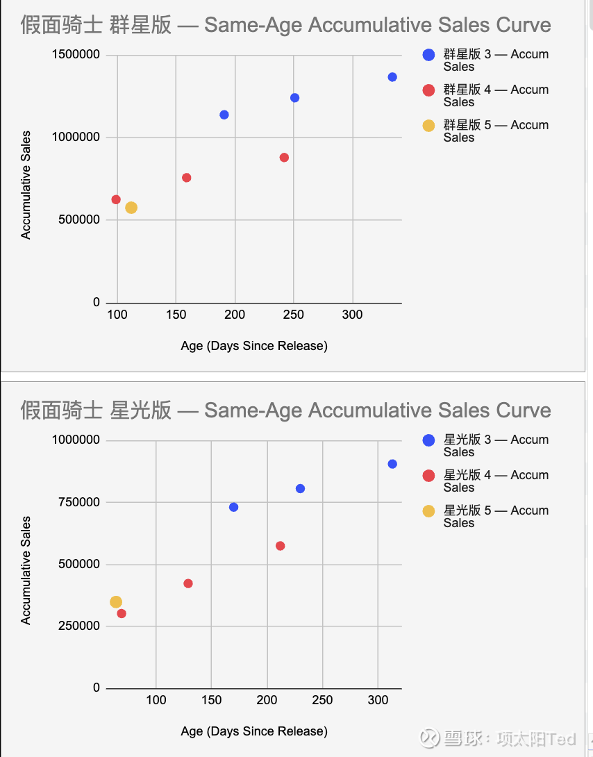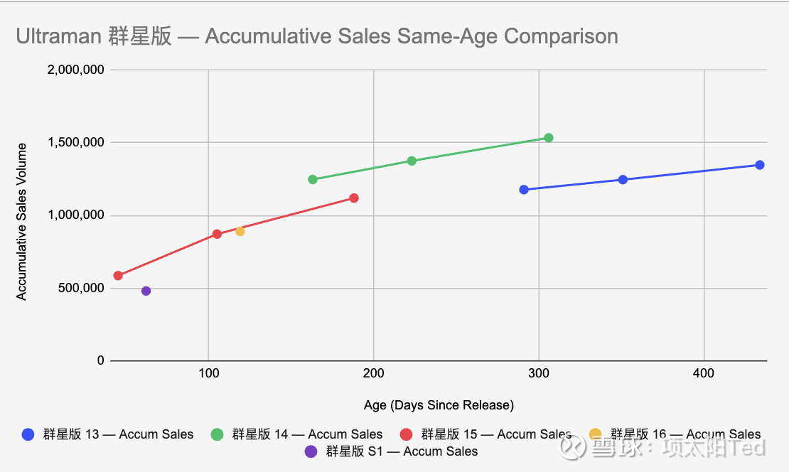 方法是 Same-age analysis:假设每一弹产品从发售到长尾,有相对稳定的销售节奏,粗略拆为: