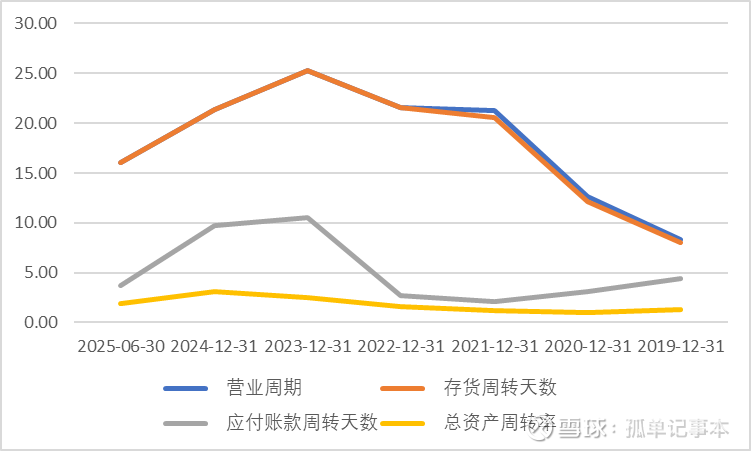 从公司资产负债表看,公司偏轻资产运营,总资产52亿,负债14亿,资产负债率27%,有息负债较低(短期借款1.71亿)。资产侧主要是现金(货币+短期投资)合计约19亿,占比37%。其次为存货,当前占比16%,需关注存货在资产中占比的提升。公司的营业周期基本与存货周转天数一样,因为应收与应付都很短。