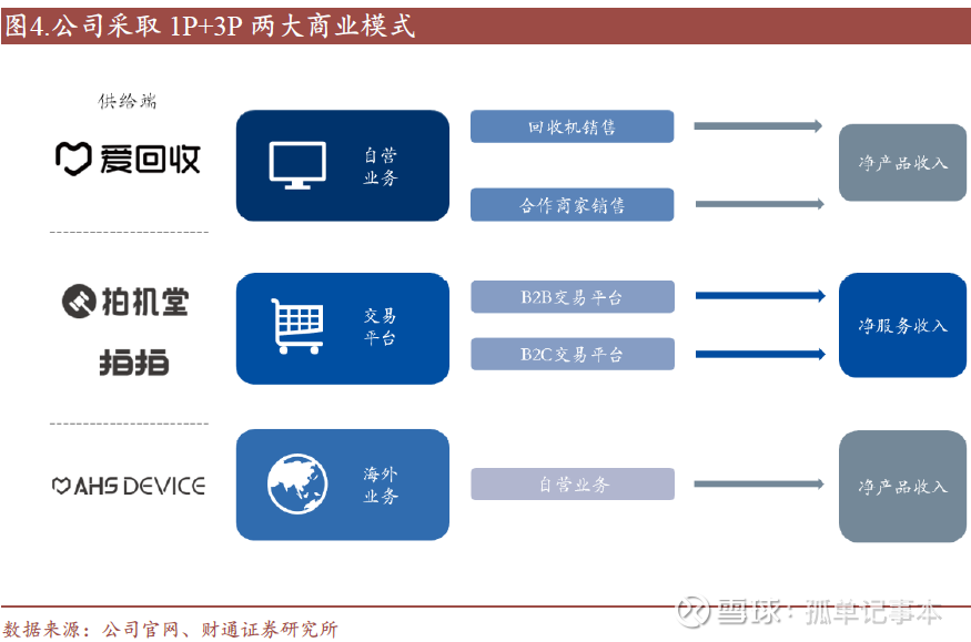 1P(赚取商品价差):公司以爱回收为渠道通过线上线下采购设备,并利用拍拍市场、爱回收线下门店等渠道向买家销售设备以获得产品收入。