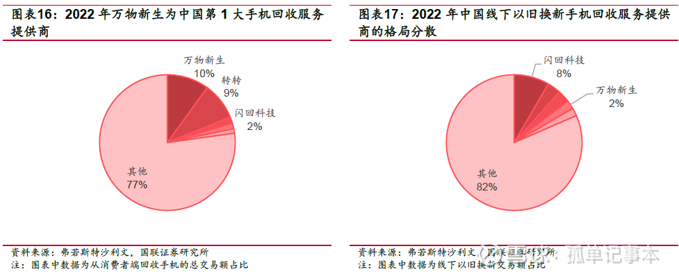 2022 年,按总交易额计算的中国五大手机回收服务提供商中,万物新生排名第一,市场份额达到10%。