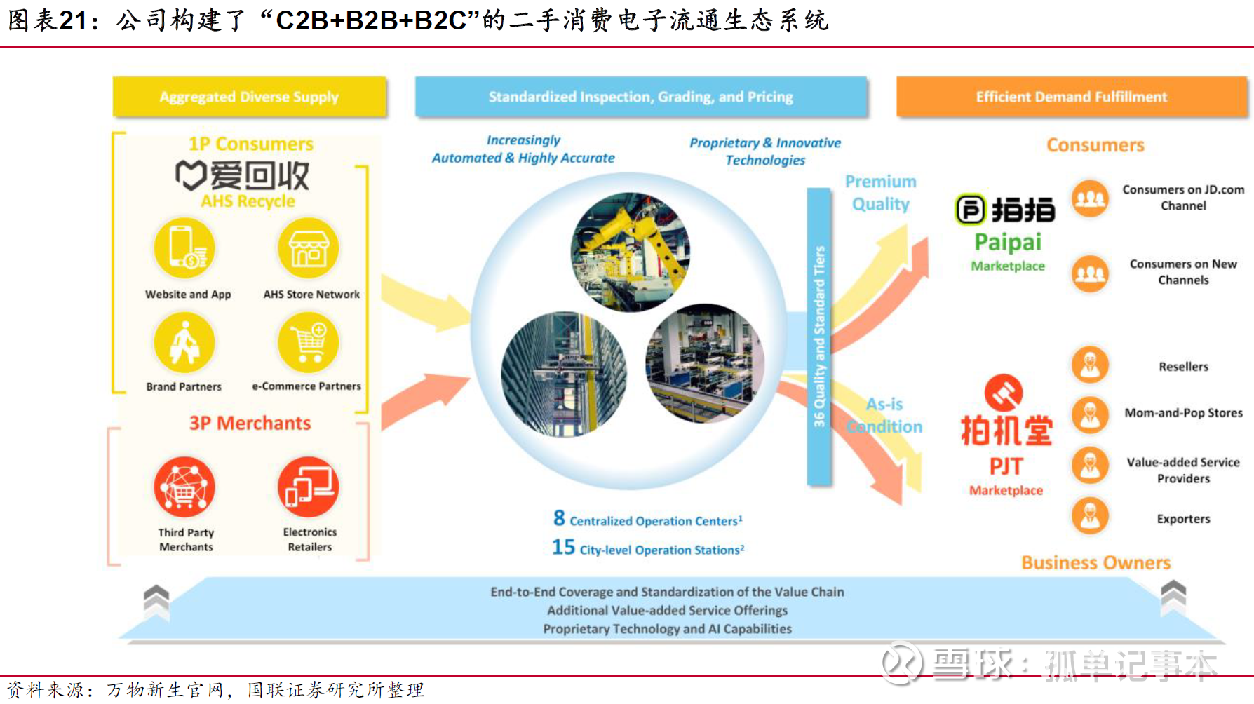 2019年-2021年:2019年从京东集团收购"拍拍"(Paipai Marketplace),通过将核心交易服务能力延伸至零售购买者进一步满足消费电子需求,显著补充了爱回收的供应来源。对拍拍的收购与整合形成了"从消费者处回收再销售给消费者"的闭环生态。同年开始在中国内地以外地区布局,与当地运营商、商户和零售商共同开展全球二手消费电子采购与分销,并开始在低线城市扩展爱回收门店网络(包括自动回收柜)。