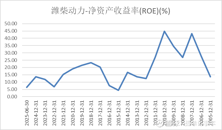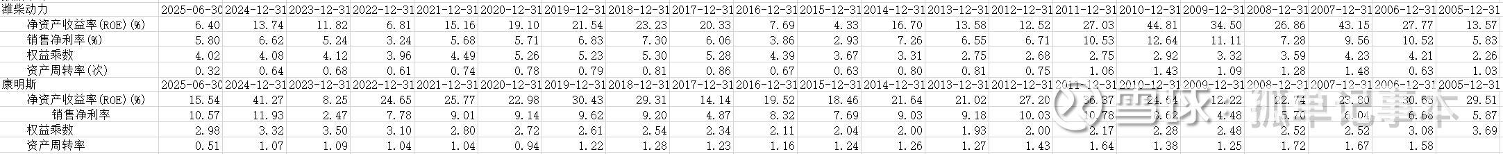 潍柴动力过去十年平均ROE为14.37%,主要通过适度的净利润率和较高的权益乘数实现。康明斯过去十年的ROE为23.48%,主要依靠更高的净利润率和更高的资产周转率。