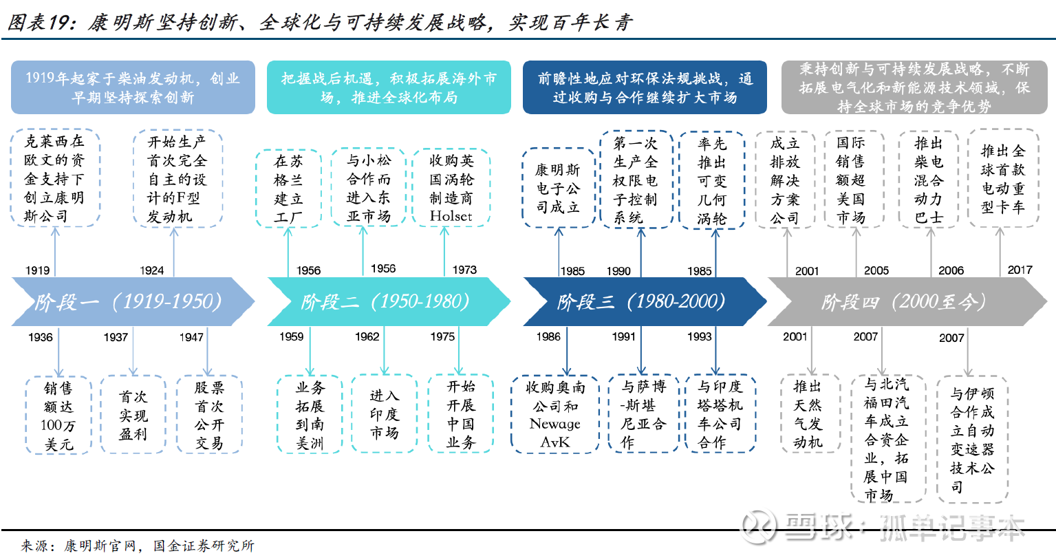 第一阶段(1919-1950 年),康明斯通过创新柴油发动机技术以及进军商用卡车市场,奠定了早期发展基础;