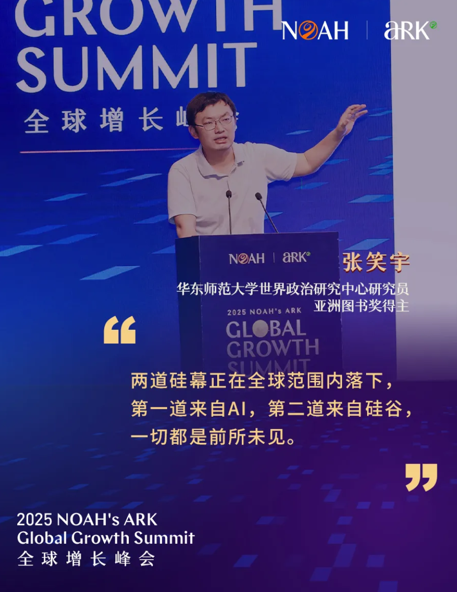 华东师范大学世界政治研究中心研究员,亚洲图书奖得主张笑宇在诺亚ARK「N+全球读书会」“地球演化的‘第29个步骤’:超级AI的文明与增长”系列分享会中指出:“两道硅幕正在全球范围内落下,第一道来自AI,第二道来自硅谷,一切都是前所未见。”他在新作中提出的“人类当量”观点,引发广泛关注:“人类当量”是衡量AI量产智能效率的标准,这一指标预示着未来AI将超过甚至取代人类智能。