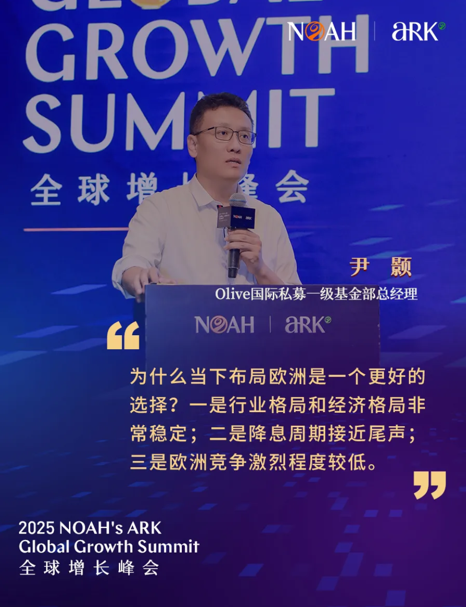 Olive国际私募一级基金部总经理尹颢带来未来财富配置方向的思考,重点分享了推动财富再分配的三大趋势及相关产品布局。在提及为什么当下布局欧洲是一个更好的选择时,他分享了三个关键点:一是欧洲的行业格局和经济格局非常稳定;二是降息周期接近尾声,未来欧元有可能升值的预期;三是欧洲竞争激烈程度较低。