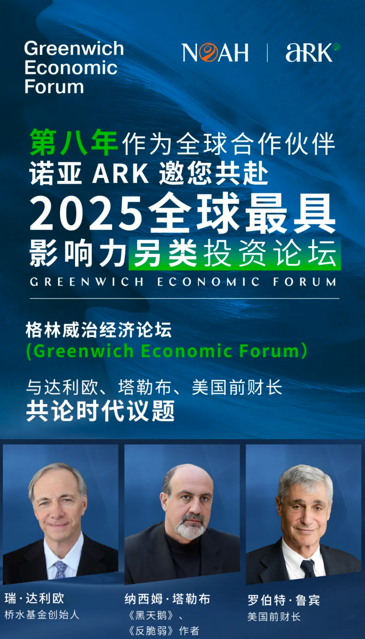 今年,诺亚ARK将第八年以全球合作伙伴(Global Partner)身份亮相格林威治经济论坛。论坛将于2025年10月6日至8日(美东时间)在美国康涅狄格州格林威治盛大启幕。议题不仅覆盖宏观经济、资产策略与技术创新,还将影响全球资本的流向与投资回报。在这场汇聚全球智慧的核心平台上,达利欧的分享将为我们在变局中把握投资原则、规避周期风险提供关键指引。