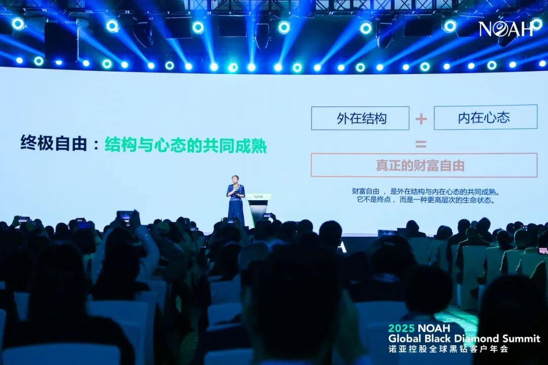 在今日举办的「AI同行·共创未来」2025第18届诺亚控股全球黑钻客户年会·澳门上,诺亚控股联合创始人、董事局主席汪静波女士发表主题演讲《从混沌到清晰,为您的全球家族打造专属操作系统》。基于过去二十余年的世界观察、华人经验以及经过验证的资产配置智慧,她指出,未来十年,全球华人家族财富管理迎来关键时期,并分享面向全球华人黑钻客户的未来战略。