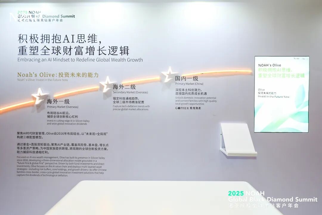 在「AI同行 · 共创未来」2025第18届诺亚控股全球黑钻客户年会·澳门现场,诺亚旗下Olive Asset Management携手全球领先的机构伙伴带来投资洞察分享。作为诺亚「全球财富基础设施」的关键组成部分,Olive以家族财富增长引擎为定位,正在用AI思维重塑跨周期、跨区域的全球投资方法论,为全球华人提供兼具系统性与前瞻性的资产管理服务。