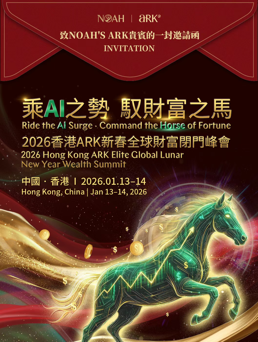 当AI浪潮澎湃而来,财富的判断方式,正在发生结构性变化。2026年1月13–14日,「乘AI之势 · 驭财富之马」2026 ARK 香港新春全球财富闭门峰会,将在中国香港启幕。