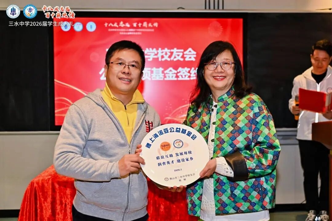 2026年1月2日,诺亚控股旗下上海诺亚公益基金会与佛山市三水中学校友会完成公益专项基金签约。该公益专项基金由多位三水中学爱心校友共同发起,以长期、规范的方式支持母校的教育发展。