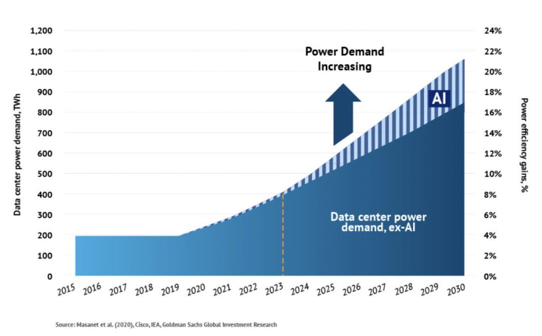 来源:Masanet 等(2020)、Cisco、国际能源署(IEA)、高盛全球投资研究
