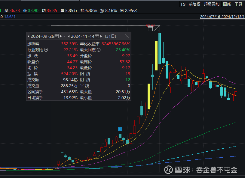 纳科诺尔在去年9月底到11月中旬,走出上升主升浪,上涨幅度382.39%。