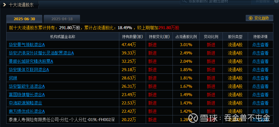 3. 次新股,2025年半年报中十大流通股东几乎全是机构新进股东