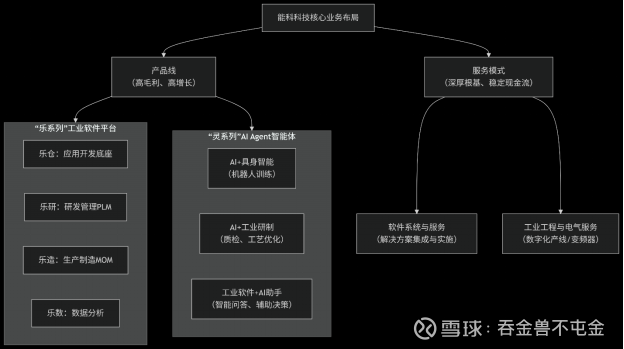 能科科技专注于为高端制造业企业提供数字化解决方案,业务涵盖工业软件(如乐仓、乐研、乐造、乐数)、智能制造系统集成及AI+工业应用。公司通过自主研发、优化集成和AI技术融合,构建了“乐系列”工业软件和“灵系列”AI Agent产品体系,覆盖研发、生产、运维等全流程。