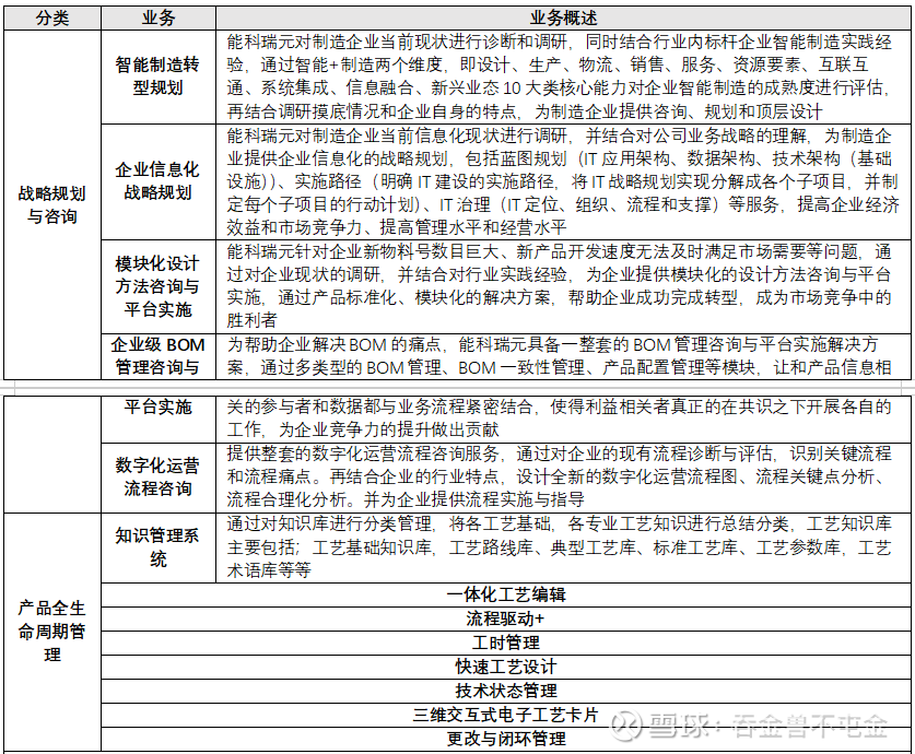 能科科技股份有限公司专注于为航空、航天、高科技电子等高端制造领域提供智能制造整体解决方案,公司成立于2006年12月,2016年10月在沪市主板上市(股票代码:603859.SH)。公司通过并购子公司和布局工业云服务拓展客户群体,核心技术涵盖数字孪生、PLM(产品全生命周期管理)、MES(制造执行系统)等领域。客户以国有军工企业为主,技术可复用率达60%,业务布局覆盖京津冀、长三角等工业集中区。重点业务包括: