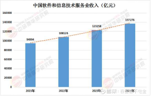 从2014年的37026亿元增长至2024年的137276亿元,年复合增长率显著。特别是在2022年,我国软件和信息技术服务业业务收入突破10万亿元大关,达到108126亿元,同比增长13.22%。2024年,软件业务收入平稳增长,同比增长10.0%,利润总额也实现了8.7%的增长。