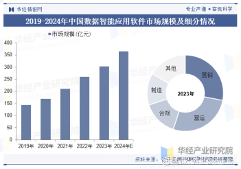 2023年,中国数据智能应用软件市场规模大约增至303亿元。当前,我国数据智能应用软件主要包括营销、营运以及合规、制造等其他应用场景;其中,营销、营运的市场份额合计占比过半。