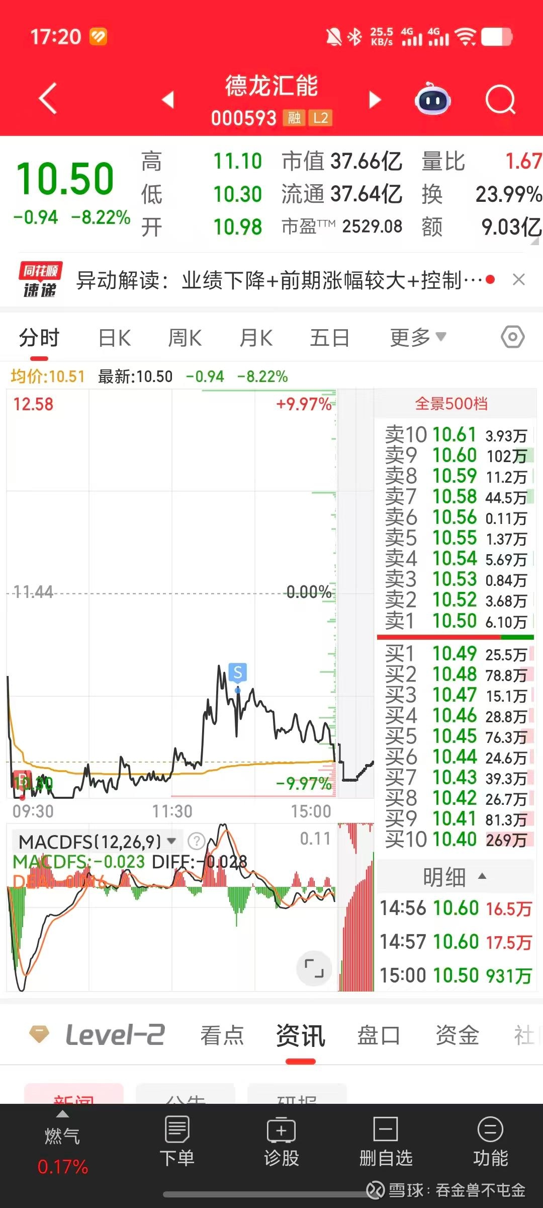$德龙汇能(SZ000593)$ 跌停加的仓,然后下午拉起来的时候T出去了。今天没有封死跌停,有不少资金参与,盘后出了龙虎榜,还是挺健康的。日线走势也没跌破5日线,个人认为走势依然符合预期,继续中线格局持有。