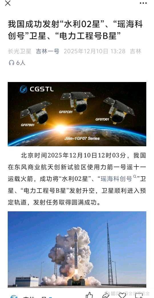 蓝箭的第一个可回收火箭发射,除了最后没有回收成功之外,其他发射任务都圆满完成,后面国家队、民营火箭公司的发射任务源源不断,积累的经验越多,可回收技术最终会实现并走向成熟,可回收技术能够降低70-80%的火箭发射成本,未来发卫星的成本大幅降低。