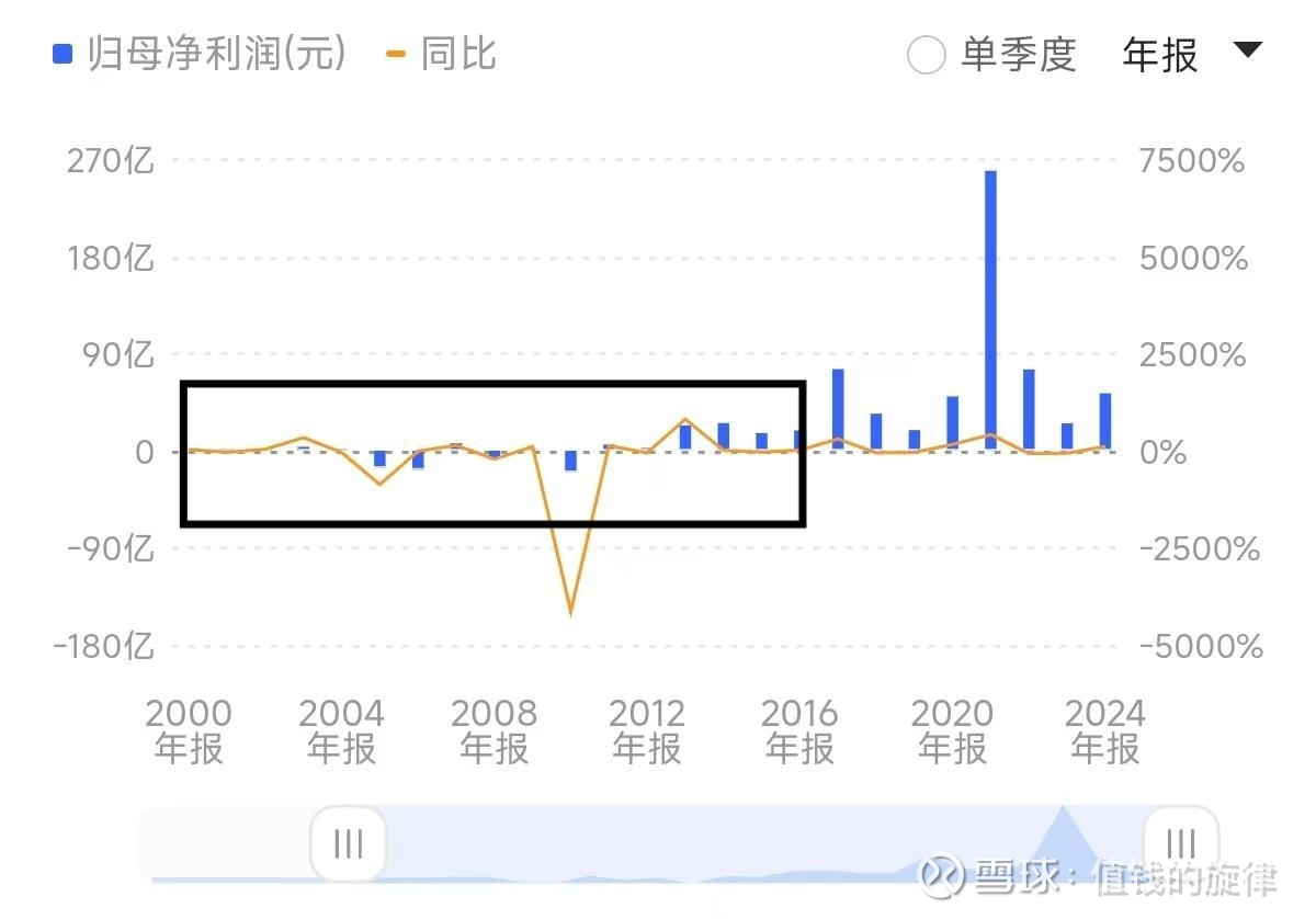 原因也不难猜测,就是没赚到钱、囊中羞涩。2000年至今的归母净利润图上能看出来,一直到2015年之前京东方的净利润时有时无,还数次出现过亏损,增速下降当然更是常事。所以这时候要是还能稳定分红,那才是见鬼了。