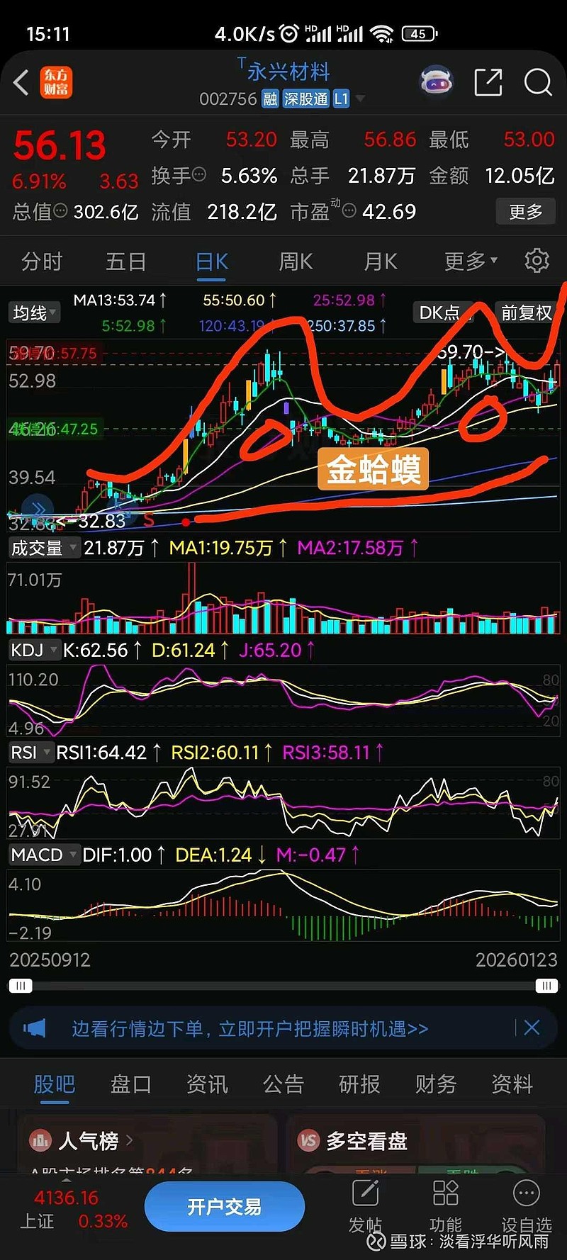永兴材料目前走势是标准的金蛤蟆