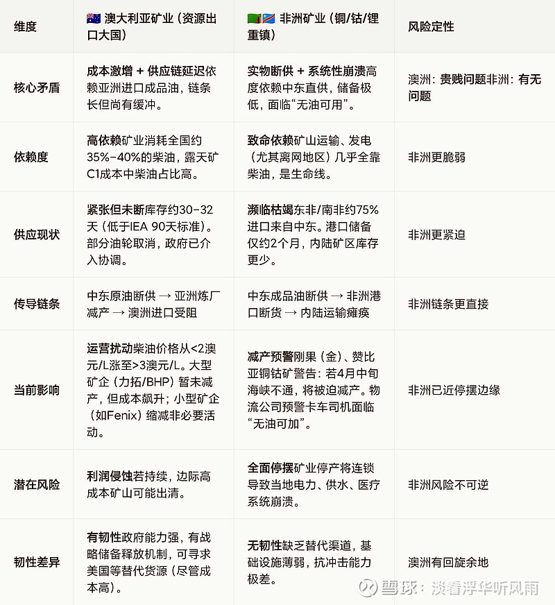 $天齐锂业(SZ002466)$ 中东冲突造成的油价上涨对澳洲矿影响有限,但对非洲矿是致命的。因为澳洲基建好很多,非洲平常时期都依赖发电挖矿,$赣锋锂业(SZ002460)$ 澳洲矿占比也不低$中矿资源(SZ002738)$ 主要矿都在非洲。当然冲突造成的影响是短暂的,美以已经输了。