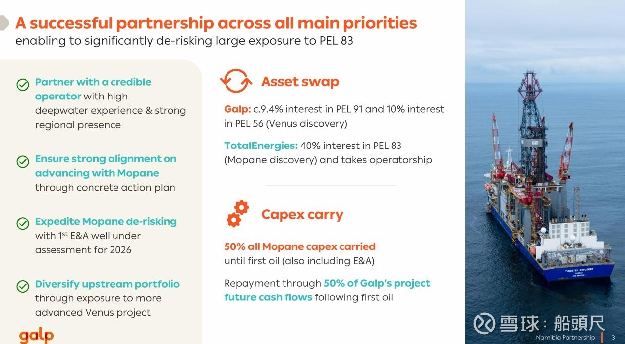 沟通会上galp的说辞是两个:一是资本,farm out后capex从100%减少到25%,资本负担少很多;二是tte在区域的经验,对地质的了解,venus 对于高油气比开发的设计等等有助于mopane的开发。