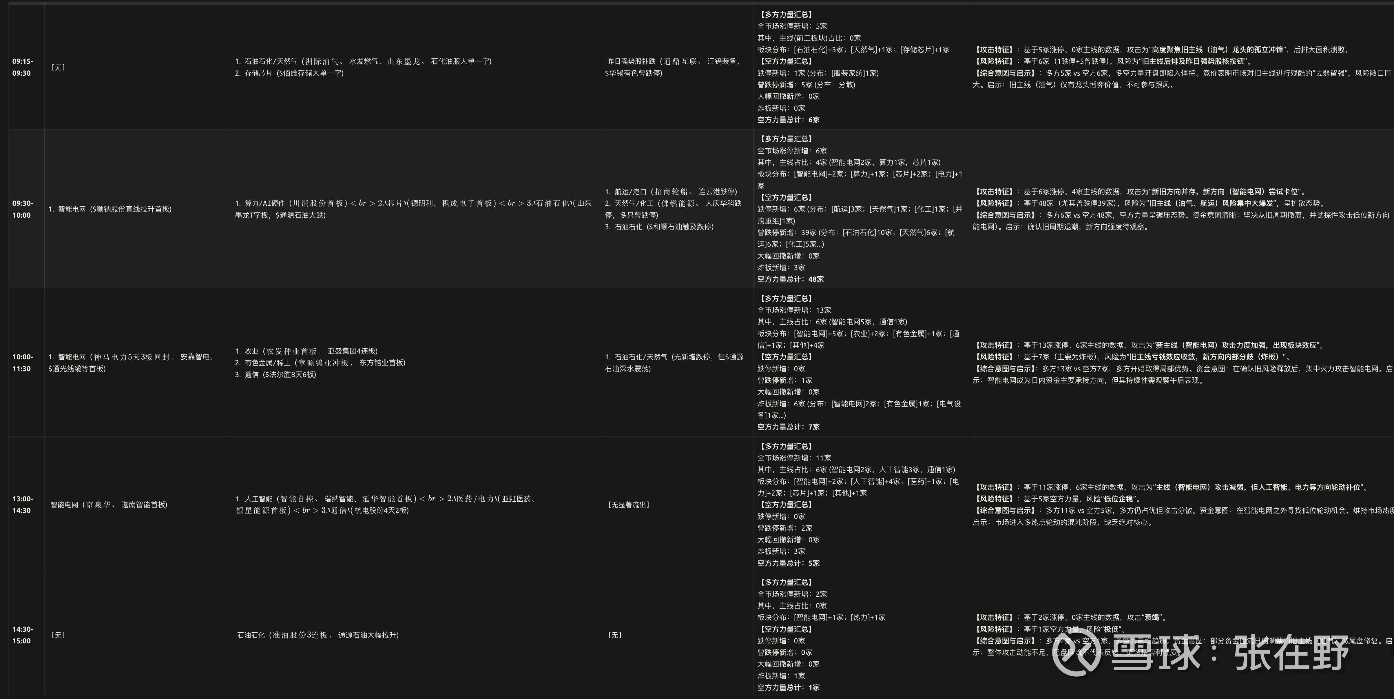 结论: 空方力量(旧周期风险)在早盘集中释放后减弱,但余威仍在;多方力量(新方向)在局部取得优势,但尚未形成全局号召力。天平从极致的空方倾斜转向脆弱平衡。关键转折点在于智能电网能否在明日走出至少一只换手2板,完成结构破局;同时,$和顺石油等旧周期A杀股必须止跌。