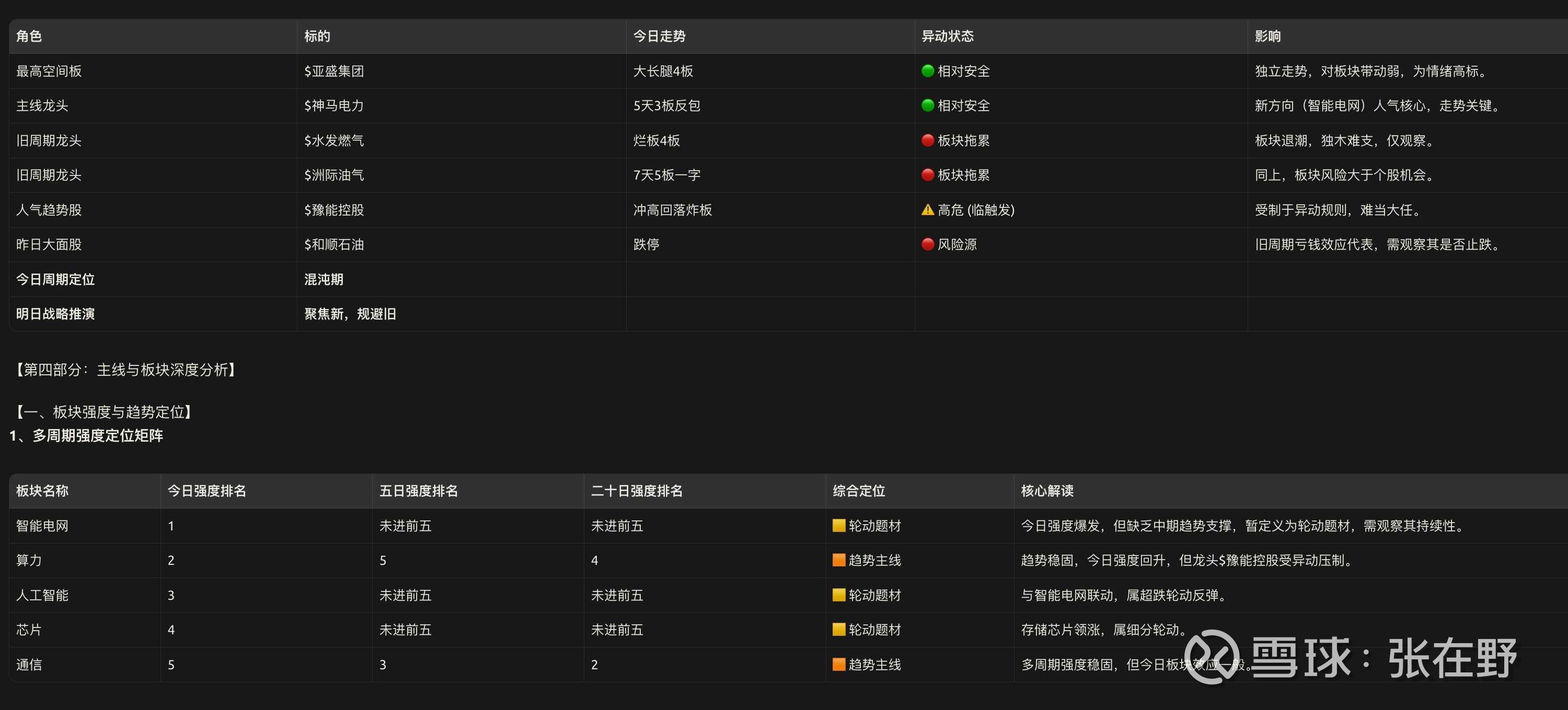 在野评估: 明日是关键的结构验证日。具体战术锚点: 观察板块内能否出现强势的换手2板。若$神马电力能平开或高开快速走强,且早盘有智能电网个股强势换手晋级2板,则板块晋级主升期的概率大增;若$神马电力被核或全天无2板出现,则板块可能重回轮动混沌。