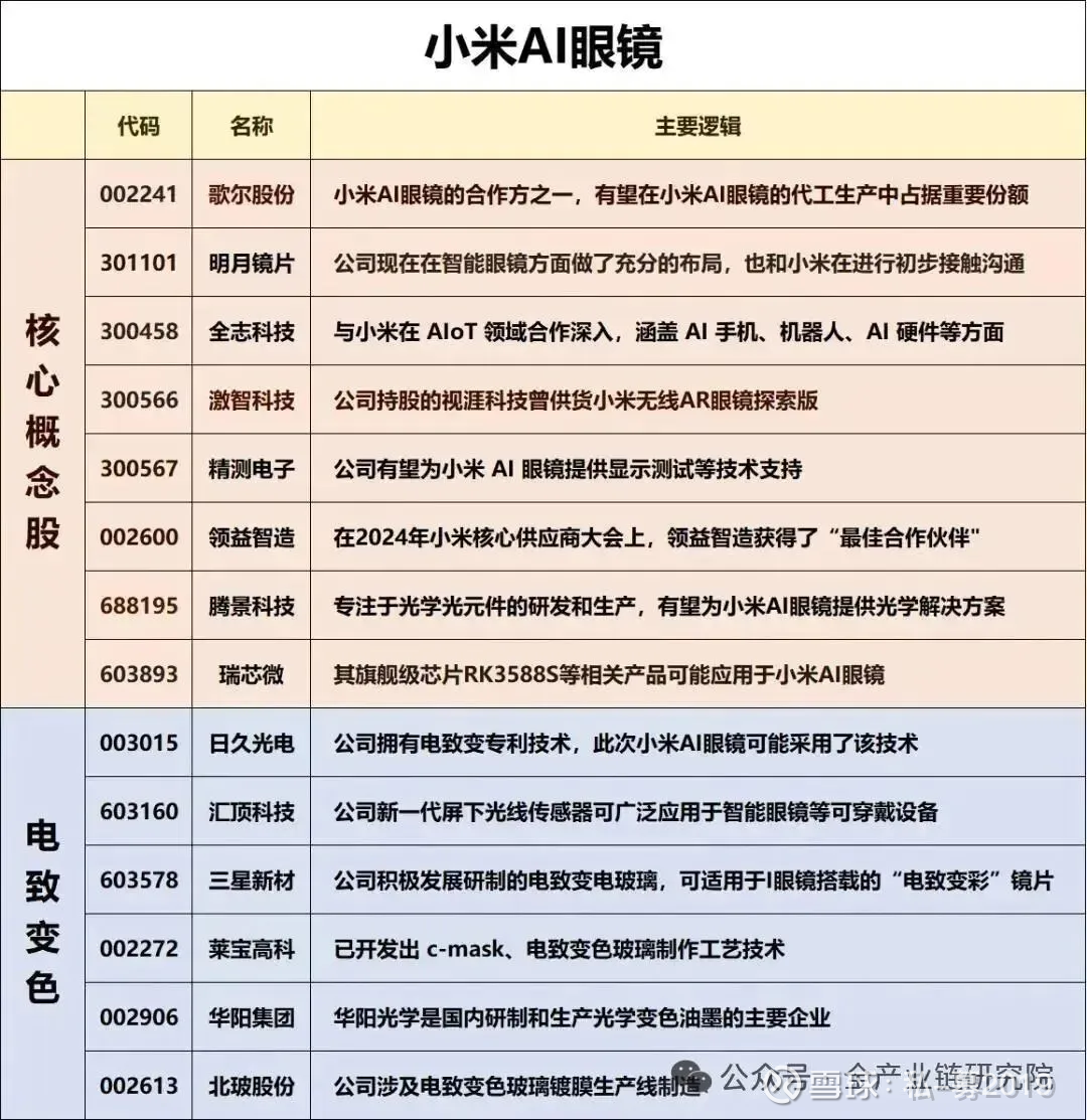 A:雷朋组装环节主要参与商为歌尔和陆逊迪卡;PCBA环节由隆祺科技参与;AR眼镜由歌尔代工,价值量达几千元;AI眼镜因增加摄像头,涉及膜造玻璃及镜头,参与商包括宇瞳光学和玉晶光;Meta Slate采用LCOS和正列光波导方案;后续Orin产品计划升级为Micro LED和衍射光波导方案;SOC环节恒玄科技卡位优势显著,小米和字节采用恒玄与高通双芯片方案,后续有望单芯片替代,其6000系列芯片价值量15-20美元,普通手表及眼镜芯片价值量较其低30-50%,恒玄耳机市场份额稳定且三季度改善明显,其他关注瑞芯微、炬芯科技、泰凌微。