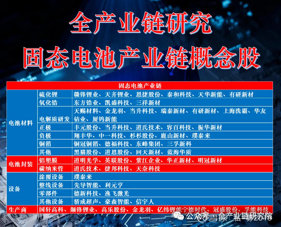 当前节点推荐逻辑: 当前推荐关注固态电池行业,逻辑为:三季报后题材轮动,叠加下半年大客户审查结束、招标完成及产业峰会密集,且固态电池板块回调30%-40%,当下是关注行业变化的合适时机。